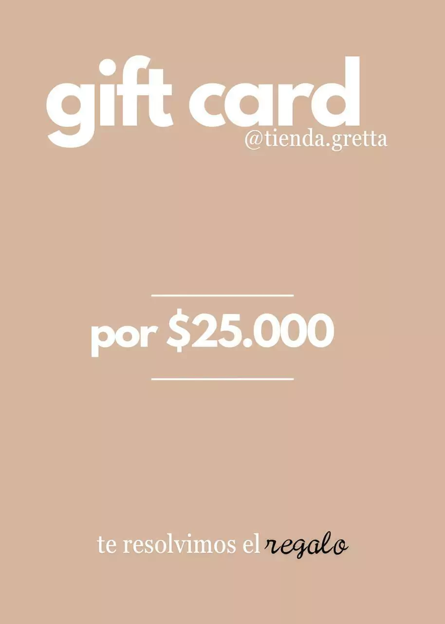 Gift Card valida por el monto indicado. Recibirás una tarjeta virtual personalizada para el agasajado y un codigo de descuento para usar en TODA la web, con el que tendran 30 días para canjearlo por los productos que elijan!